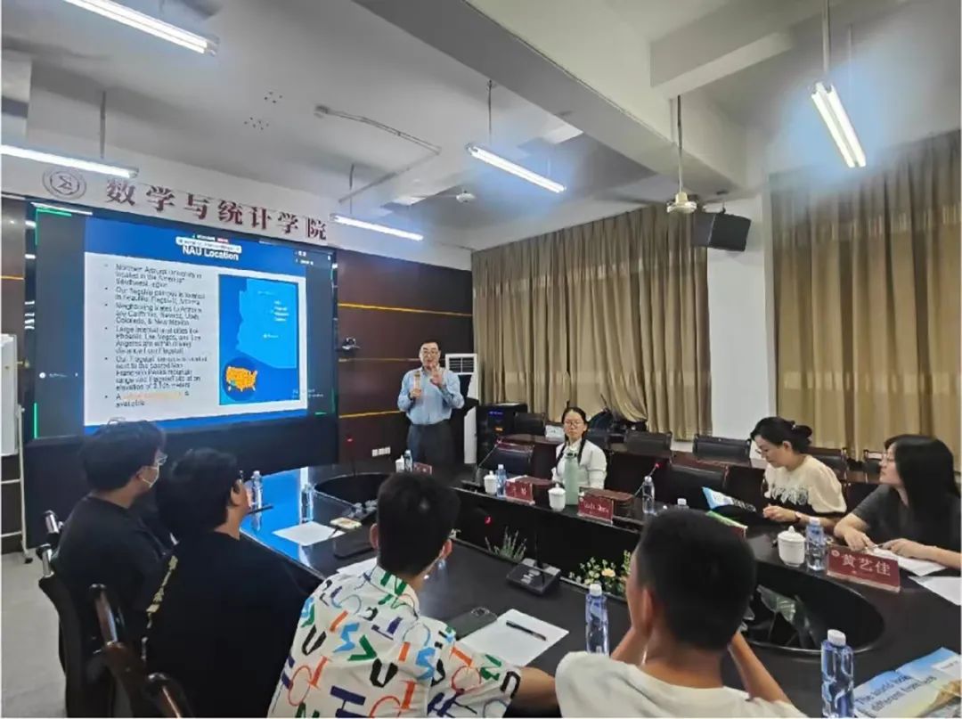 座谈会上,我院执行院长黄韩亮首先代表学院对代表团的到来表示热烈的欢迎,并表达了对未来合作的深切期待。他指出,我院对实验班办学成果与教学成效充满期待,希望两校的专业师资能够进一步开展课程教学内容的探讨,共同推动国际化人才培育的“无缝”衔接,同时也期待通过此次合作,为同学们提供更广阔的学习和发展平台。北亚利桑那大学商学院系主任张宇镭教授介绍了该校师资队伍、教学模式与121项目生管理办法等基本情况,他表示,我院数据计算及应用专业与该校商业分析专业实现精准对接,这种“数理基础+应用”的培养衔接模式不仅为交叉学科人才的培育奠定了坚实基础,还将极大提升项目生的就业竞争力,为他们未来的职业发展增添强劲的动力。海外教育学院院长李庆瑶指出,联合培养是我校提升国际化办学水平,培养具有国际视野和跨文化交流能力的复合型人才的战略举措之一。通过“引进来”,借鉴与吸收国外的优质教育资源,有利于推动我校原有教学模式的变革。同时,学生“走出去“的紧迫感也将推动他们加强自我管理,提升学习成才的目标性。