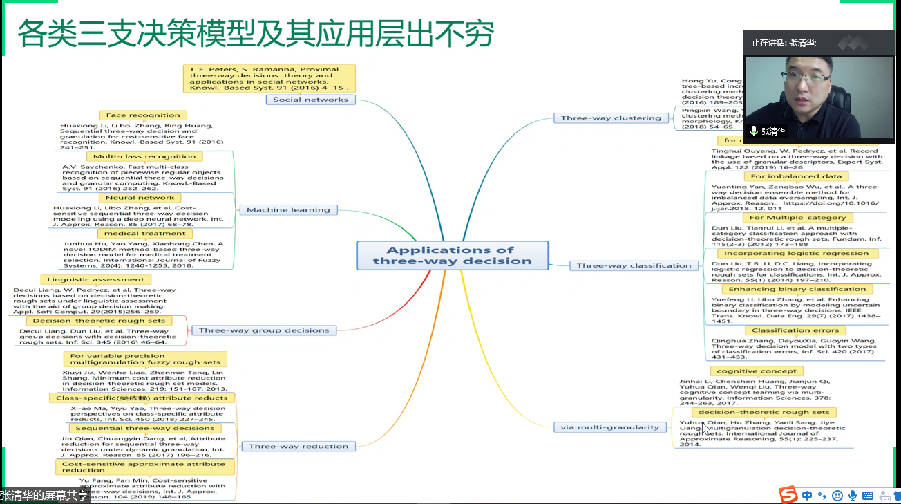 应我院邀请,7月7日下午,重庆邮电大学张清华教授在腾讯会议作了题为《三支决策模型研究及应用》的报告。相关师生聆听了此次报告,报告由廖淑娇副教授主持。