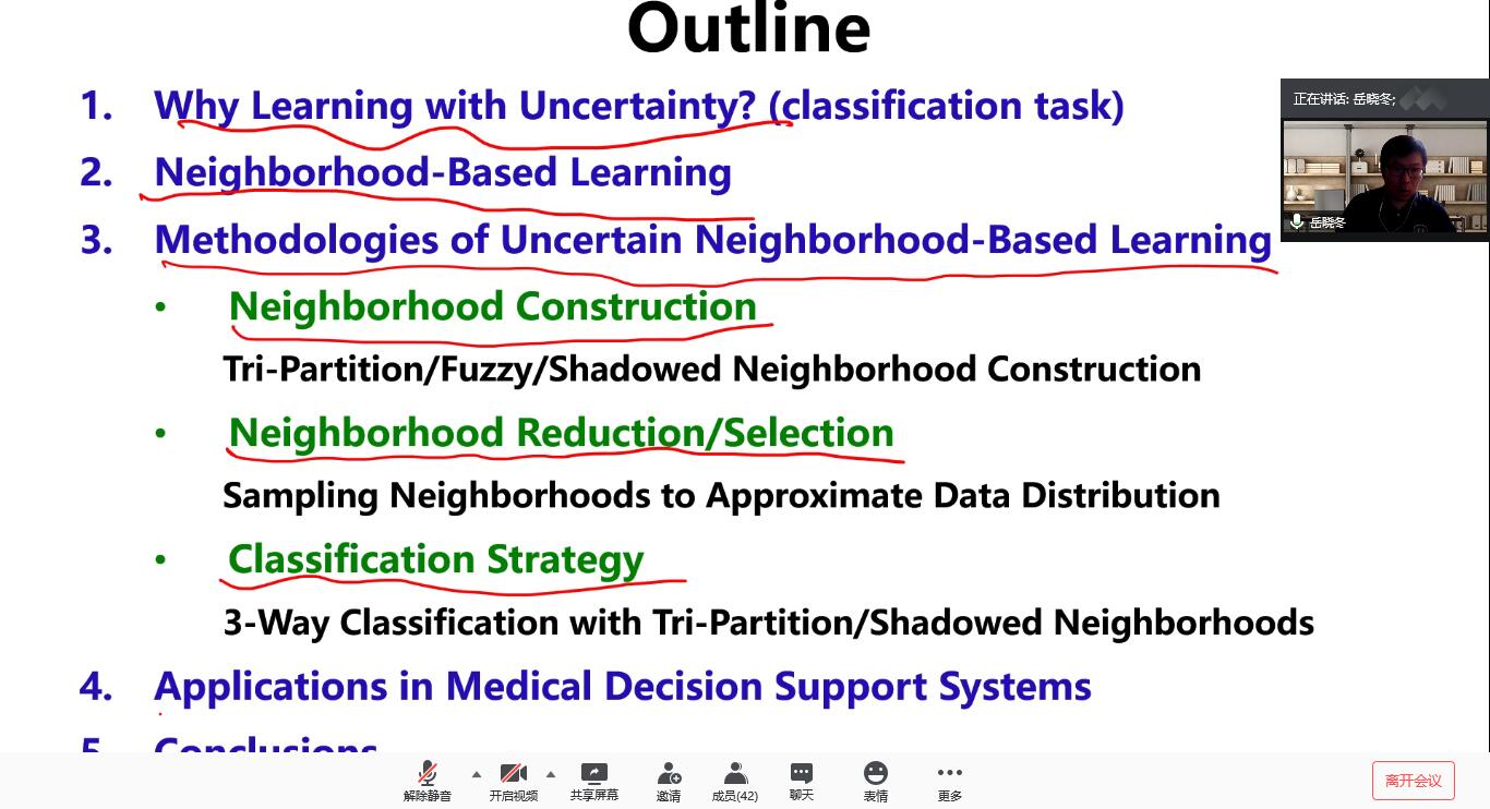 应我院邀请,6月19日上午,上海大学岳晓冬副教授在腾讯会议作了题为《基于邻域的不确定性学习—模型与应用》的报告。相关师生聆听了此次报告,报告由廖淑娇副教授主持。