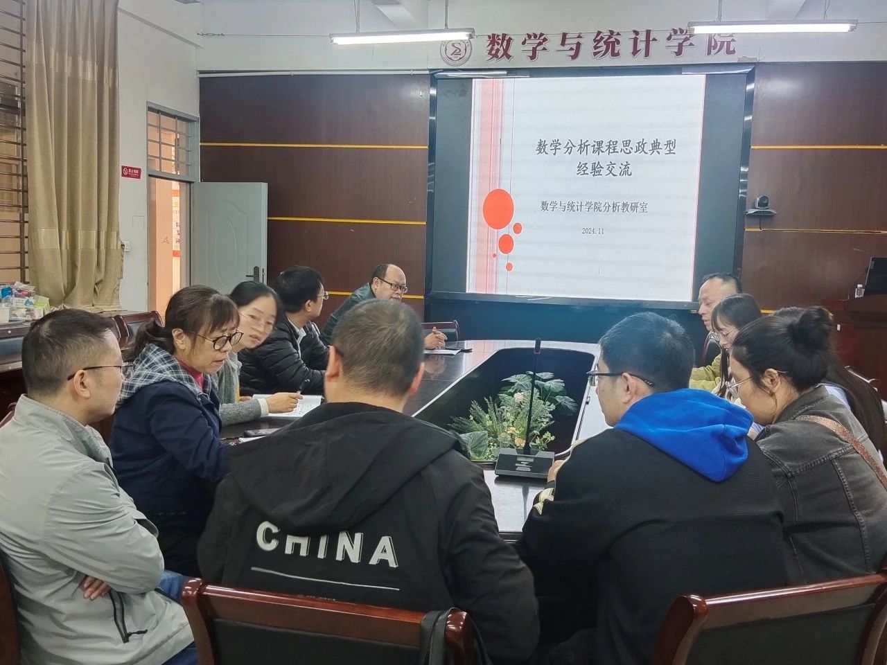 会上,各教研室结合本教研室课程特点,精心选取素材,解读思政含义,对《数学分析)《数学教学论》《高等代数》《概率论》等课程建设工作进行汇报,从数学文化、学科发展、数学应用等方面挖掘思政元素,并将这些思政元素融入专业知识,引导学生树立正确的人生观、价值观、世界观,使课程思政与专业同频共振,形成协同效应,落实以“立德树人”为根本任务的综合教育理念。教师们还针对在教学实践过程中遇到的问题提出解决方案和建议,以便今后的课程思政工作能够顺利开展并取得更好的效果。