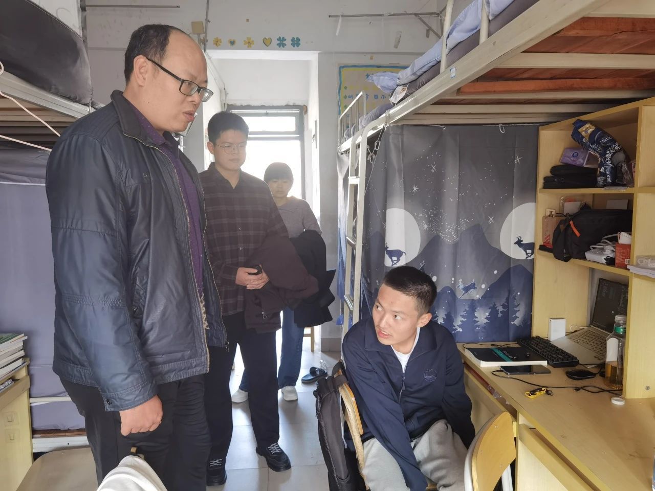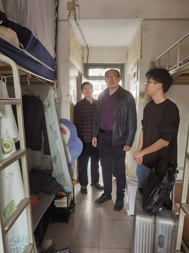 开学第一天,学院老师走访学生宿舍,和同学们亲切交谈,询问他们的寒假趣事、返校感受、适应情况等,叮嘱他们在新学期要继续和睦相处,发奋图强,不忘初心。