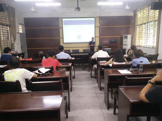 在报告中,张荣茂教授首先简要介绍了协整的相关概念,并列举了一些关于协整的典型例子,如醉汉和他的狗的行走路线。其次,由结构性破坏可能会导致巨大的预测错误和不可靠的模型,进而提出问题:当前冲击的影响会持续吗?中断是否影响单位根测试或协整测试?张荣茂教授接着建立了一个协整模型,具体阐述了估计已有的三种方法:似然比、误差校正模型、SC-VECM程序;然后提出了自我分析方法并阐述了一些结论;最后对一些例子进行了模拟分析。报告结束后,在座学生和老师就相关研究问题进行探讨和交流。