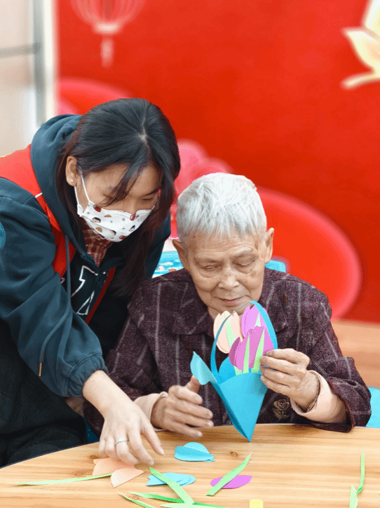 煦暖韶光沐,雷锋精神存。我院青年志愿者队伍走进漳州市正兴养护院,开展关爱老人的志愿活动。志愿者们带领老人体验养生拍拍操,共同制作手工作品。巧手同粘千色艺,欢颜共叙百年心。青丝映白发,温情暖夕阳,于贴心陪伴中镌刻代际温度。
