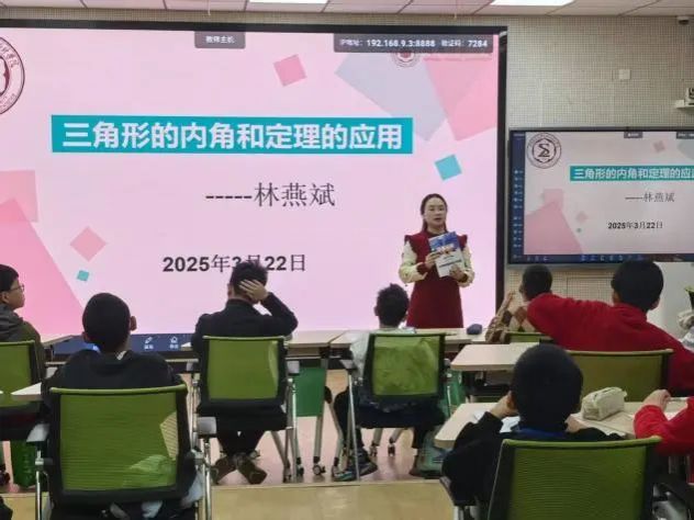 在本节数学几何的课堂中,林燕斌老师采用由浅入深、层层递进的方式为同学们带来精彩课堂,生动又不失理性,有趣又不失风采。林老师从基础概念与简单例题入手,逐步引导同学们采用多种方法解决几何问题,深入探究几何图形原理和解题思路。与此同时,林老师也持续向学生抛出启发性问题,鼓励他们自主思考,从而不断拓展思维边界。这种教学模式能有效激发学生内心深处对数学的好奇与探索欲望,提升他们学习数学的兴趣,有助于数学能力的稳步提高。