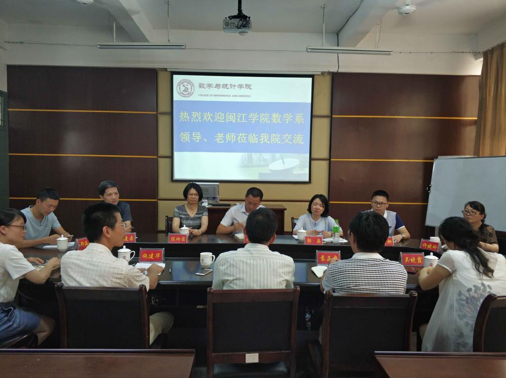 6月15日下午,闽江学院数学与数据科学学院院长林耿一行8人到我校yl6776永利集团交流座谈。数学统计学院院长林梦雷以及各系主任、专业负责人参加了座谈。