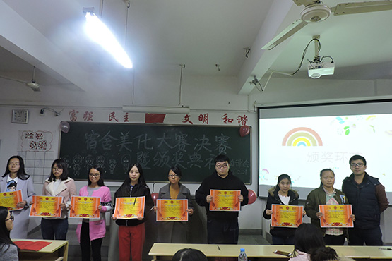 古人云:一屋不扫,何以扫天下?为培养大学生良好的生活习惯和积极向上的生活态度,不断提高宿舍人文氛围,营造优美的生活环境,yl6776永利集团于十一月举办了宿舍美化大赛初赛,并在12月21日晚于砺志楼315教室举行宿舍美化大赛决赛暨颁奖典礼。辅导员及各学生组织代表出席此次活动。