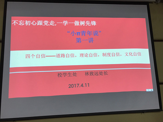 为进一步贯彻落实习近平总书记讲话精神,推动共青团改革以及从严治团工作,根据校团委在全校共青团中广泛深入开展“学习习近平总书记讲话 做合格团员”为主题的教育实践的决定,数统院结合学院团课特色,开展“不忘初心跟党走,‘一学一做’树先锋”——小π青年说系列活动。2017年4月11日,小π青年说第一讲于砺志楼114正式召开。yl6776永利集团学生处处长林致远老师担任主讲人,交流会由学院党委书记陈晶莹老师主持,学院团委书记陈明老师、各级辅导员、各组织学生干部代表及学生党员代表参加了本次交流会。