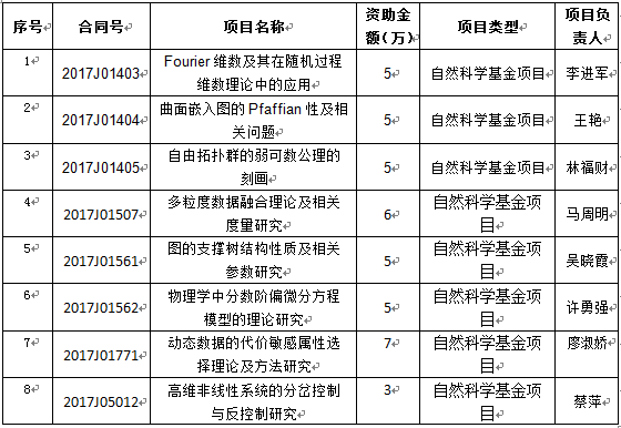 近日,福建省科技厅公布了2017年度福建省自然科学基金项目评审结果,我校共有23项科研项目获准立项,其中我院共有8项,具体如下。