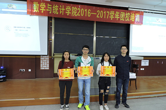 为提升我院学生干部综合实力,打造数统院精英干部,提高学生组织整体工作能力,数统院于2016年10月30日至11月17日开展一系列团校培训,先后进行了素质拓展之礼仪培训、能力培训、综合素质培训及成果展示。11月27日晚,我院院团委主办的团校培训成果展示在砺志楼120教室隆重举行。出席本次活动的有我院团委副书记陈明老师、各学生组织代表及所有干事。
