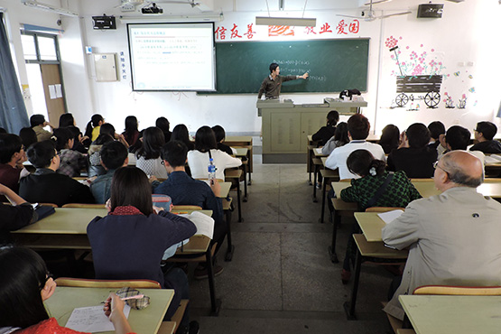 课堂上,陈锦坤老师利用多媒体和板书相结合的教学手段,详细呈现知识系统,重、难点突出,层次清晰,条理明确。将概率论与实际生活中计算机的语言识别相联系,化抽象概念为形象模型,帮助同学们理解并认识到所学知识与实际生活的联系,激发同学们学习数学的热情。陈老师娴熟的教学技能和良好的教学水平,获得了全场听课师生的一致好评。