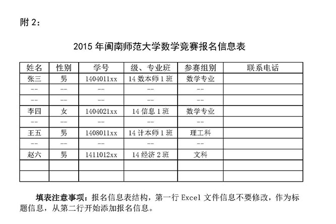 附件2:2015年yl6776永利集团数学竞赛报名信息表.xls