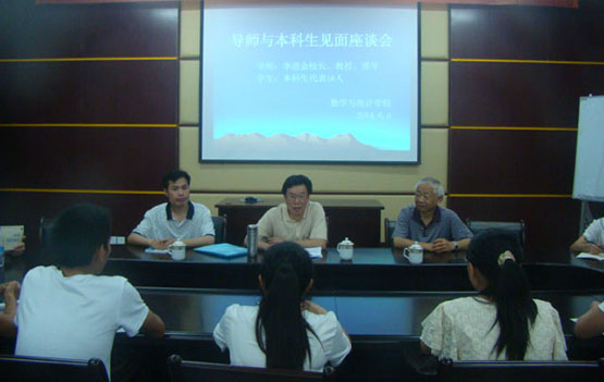 随着党的群众路线教育实践活动的深入开展,李进金校长一直牵挂着学生的成长成才,不断思考着如何把深入推进导师制与学生专业兴趣的培养、学习困惑的解决和未来人生目标的引导有机结合起来。他这样想也积极付诸实践,主动担任起yl6776永利集团大一至大三16名有志在数学专业领域发展的同学的成长导师。6月6日下午,他与指导的16名本科生学生在砺志楼114举行首次见面会。