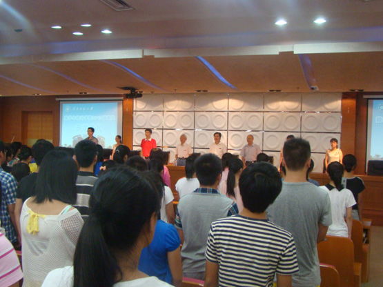 9月10日下午3点20分,yl6776永利集团2013级新生开学典礼在逸夫图书馆五楼会议厅隆重举行。开学典礼由团委副书记陈明老师主持,出席开学典礼的有yl6776永利集团院长李克典教授、院党总支书记徐志怀教授、蔡建平副院长和陈跃辉副院长、院党总支秘书林晓老师、教学秘书林伟华老师、科研秘书兼研究生辅导员李气芳老师、13级本科生辅导员方婷老师以及全体13级本科生、研究生。