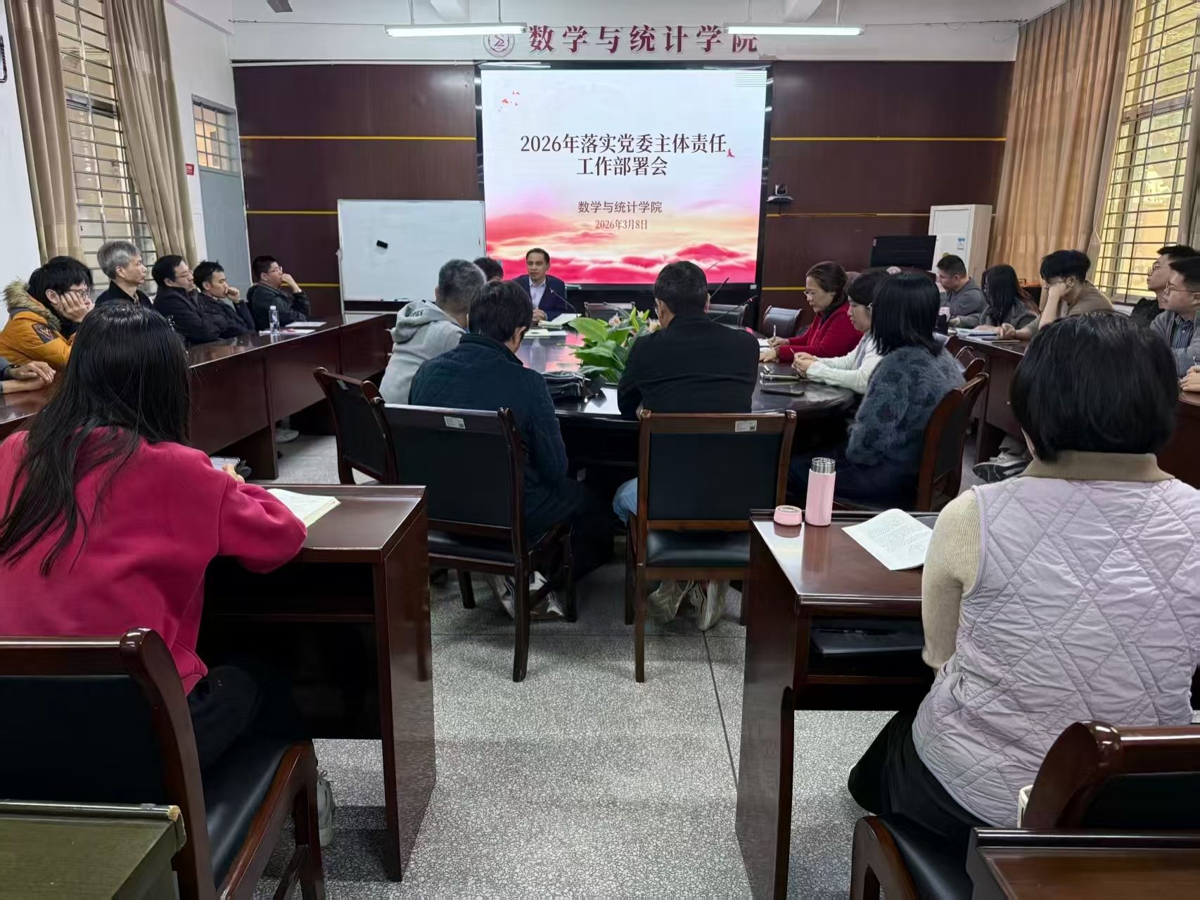 3月8日,我院在砺志楼114会议室召开2026年落实党委主体责任工作部署会,全体教职工参会。