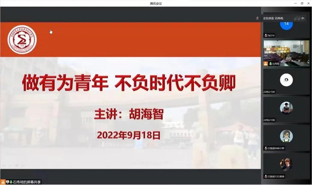 9月18日下午,学院党委副书记胡海智老师以线上会议的方式为2022级新生进行理想信念、文明养成、学涯规划、劳动实践教育。会上,党委副书记胡海智老师鼓励同学们要增强自身的理想信念、文明素养和社会实践本领,在实践中培养良好习惯。同时要规划好大学生涯,劳逸结合,努力提升自身能力,才能做到不负时代不负卿。