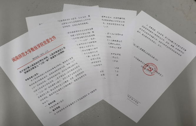 2015年,学院党委制定《关于实行教工党员担任学生导师、入党申请谈话人及发展党员联系人“三位一体”党建育人的通知》文件