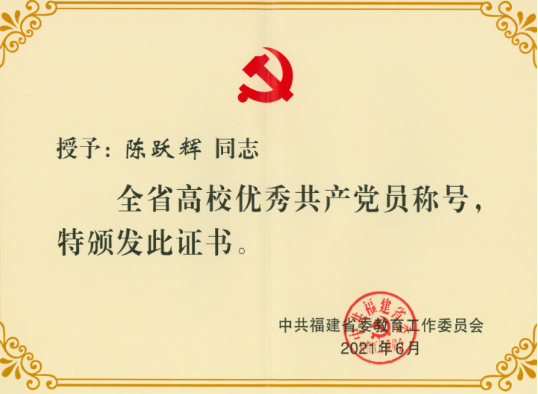 陈跃辉同志获“全省高校优秀共产党员”荣誉称号