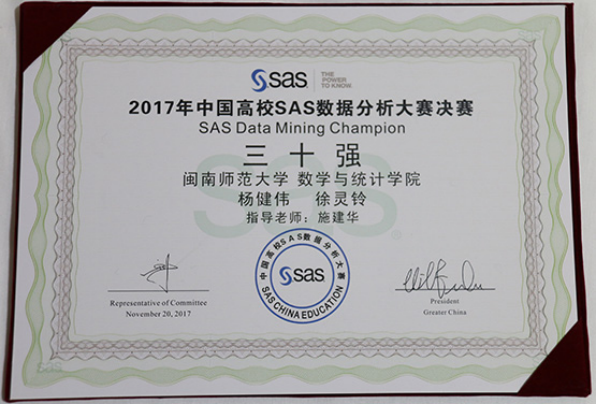 党员导师施建华指导的本科生进入2017年中国高校SAS数据分析大赛决赛三十强