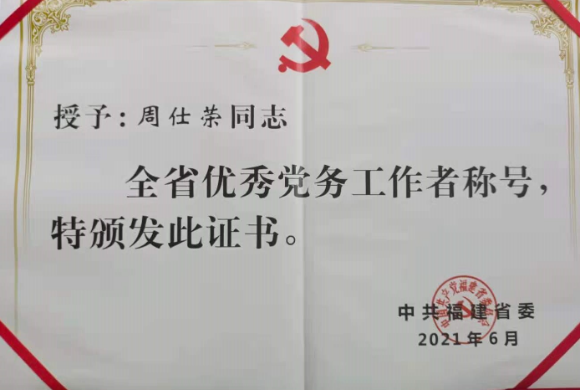 周仕荣同志获“全省优秀党务工作者”荣誉称号