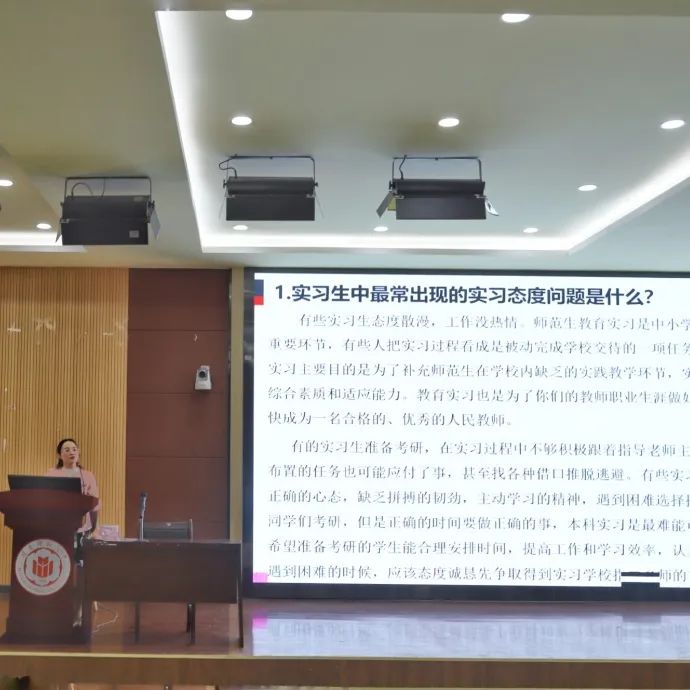 会议最后,林燕斌老师围绕教育实习的内容与要求、实习过程常见的问题两个方面为同学们做了详细的解释与说明。她提出,一是在课前要认真钻研《课程标准和教材》,了解数学数学学科的教材体系和熟悉教材的基本内容,上课前要反复进行磨合;二是在实习的过程当中要虚心的向指导老师学习上课的一些基本素养,管理学生的技巧;三是要端正实习态度,在实习过程中要保持谦虚谨慎的态度,能虚心请教并接受指导老师的意见。