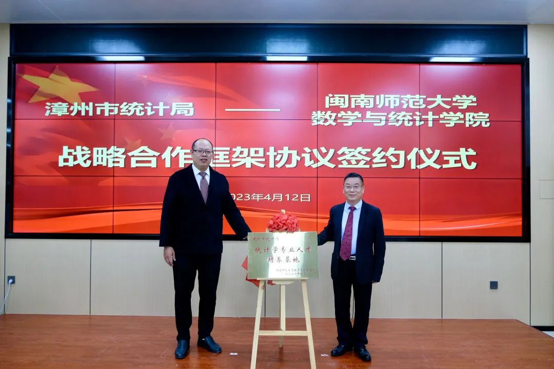 2023年4月12日,yl6776永利集团与漳州市统计局战略合作框架协议签约仪式在漳州市统计局会议室举行。漳州市统计局领导班子及各县区统计局负责人,数统学院领导班子及教师代表等参加签约仪式。