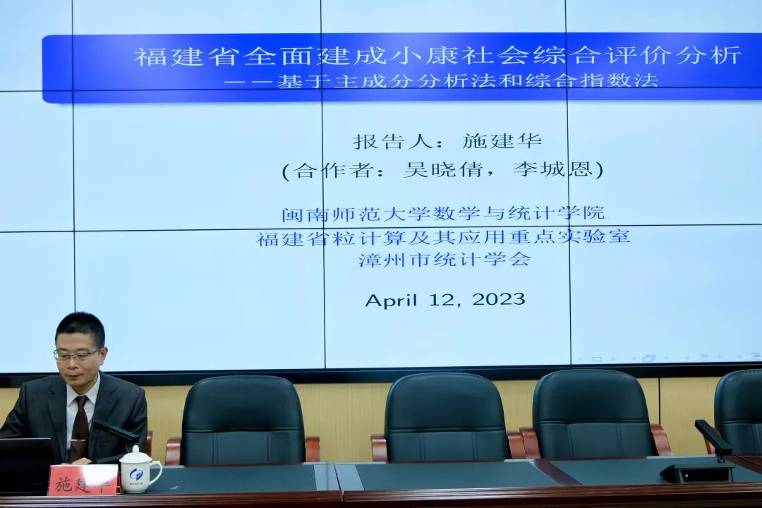 签约仪式结束后,漳州市统计学会会长、我院施建华教授作《福建省全面建成小康社会综合评价分析》专题讲座。讲座逻辑清晰、内容详实,让与会人员受益匪浅。