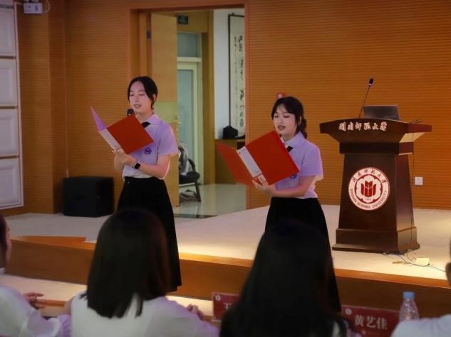 奏唱国歌:开学典礼在庄严的国歌声中拉开序幕。心怀爱国情,吾辈坚定时代理想;胸怀鸿鹄志,青年唱响明日辉煌。