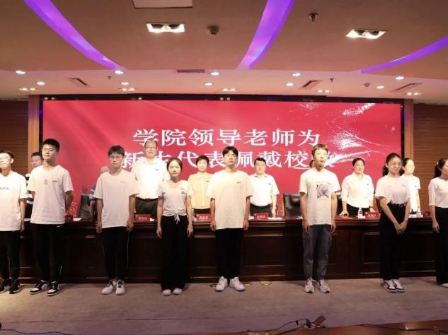 佩戴校徽:校徽代表着自豪感和归属感。学院领导为各班级新生代表戴上yl6776永利集团徽章,其他同学为自己佩戴校徽。佩戴上校徽,2023级新生将带着“闽师人”的使命和责任不懈努力,成长为可堪大任的时代新人。