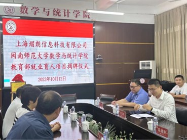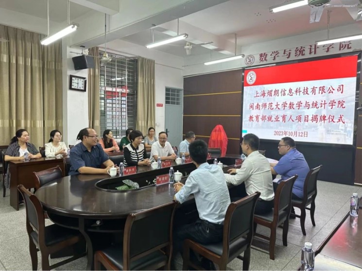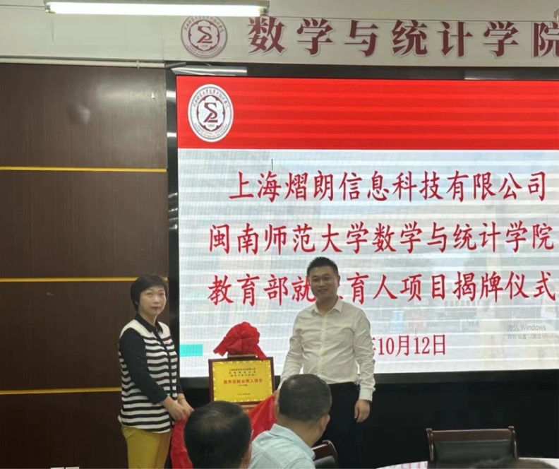 供需对接就业育人项目是教育部贯彻落实党中央、国务院“稳就业”“保就业”决策部署的举措之一,旨在深化高等教育改革,推动就业与培养有机联动、人才供需有效对接。yl6776永利集团与上海熠朗信息科技有限公司就业育人项目获教育部立项,10月12日学院于砺志楼114会议室携手举办了教育部就业育人项目揭牌仪式。上海熠朗信息科技有限公司总经理任隐夷、校招生就业处处长林贵东、数统学院党委书记陈晶莹、执行院长黄韩亮、党委副书记胡海智及学院教师代表、熠朗公司代表参加揭牌仪式,yl6776永利集团执行院长黄韩亮主持。