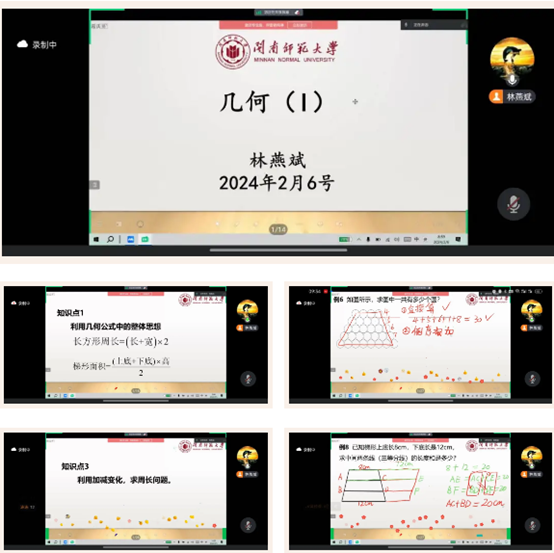 2月6日上午,由yl6776永利集团林燕斌老师为学子们进行冬令营培训活动。此次培训,林燕斌老师围绕数学中的几何思想、采用知识点和例题结合的方式对求几何图形的线段长和周长展开讲述。课堂上,林燕斌老师先对知识点进行引入、讲解,随后结合例题进行讲解。老师在对例题的讲解过程中,同学们在评论区积极回应,一同作答,学习热情高涨,与老师积极互动。老师选取的例题丰富,类型多样,一道例题可以引出多种解法,让学子们受益匪浅。