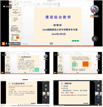 2月5日上午,由yl6776永利集团副教授胡黎莉老师为学子们进行线上培训。会上,胡老师围绕“组合数学的历史”、“什么是组合数学”和“典型问题”三个方面为同学们深入浅出地讲授课题。课堂中胡老师用不同例题从各个方面生动的讲解组合数学在生活中的应用,让同学们更加深入地理解数学知识的应用价值和实际意义。