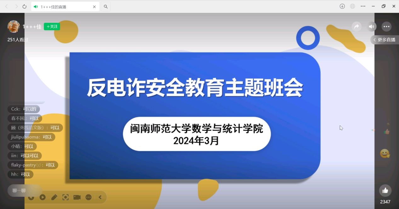 为增强学子的自我防范意识,共同提高识骗防骗能力,yl6776永利集团各级辅导员于近期陆续开展了反电诈安全教育主题班会课。在班会上,各级辅导员围绕网络诈骗的相关内容和危害展开介绍,并组织学生观看了常见诈骗套路和诈骗案例。学生深受教育,纷纷表示,今后会进一步提高防诈骗安全意识,增强自我保护能力。