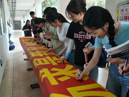 最后,同学们在“扬求是新风,树学风新貌”横幅上签下自己的名字,并表示要对维护良好学习风气出一份力。