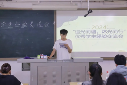 为激发我院学子对数学的学习兴趣,引导广大学生树立正确的学习观念,积极参与学风建设,共同营造良好的学习氛围,掌握学习的技巧和方法。yl6776永利集团于4月13日下午15:00在砺志201举办“追光而遇,沐光而行”优秀学生经验交流分享会,邀请22级数本一班李文艺同学和22级数本五班方佳琪同学分享数学学习经验。