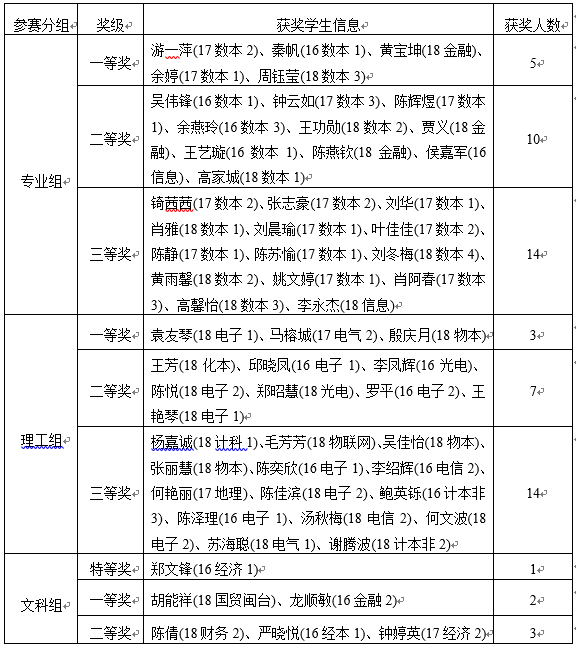 2019年yl6776永利集团大学数学竞赛试卷评阅、评奖工作已于2019年5月25日结束。针对此次竞赛中成绩特别突出的一位选手,经竞赛组委会讨论决定,给予16经济1班郑文锋同学文科组特等奖。同时给予17数本2班游一萍等58位同学各分组(专业组、理工组与文科组)一二三等奖。为严肃竞赛纪律,杜绝不当之风,竞赛组委会决定设立获奖结果争议期,为期7天(2019年5月30日-6月5日)。现将拟获奖名单(见附件、统一等级内排名不分先后)公布如下,公开征求广大师生的意见。