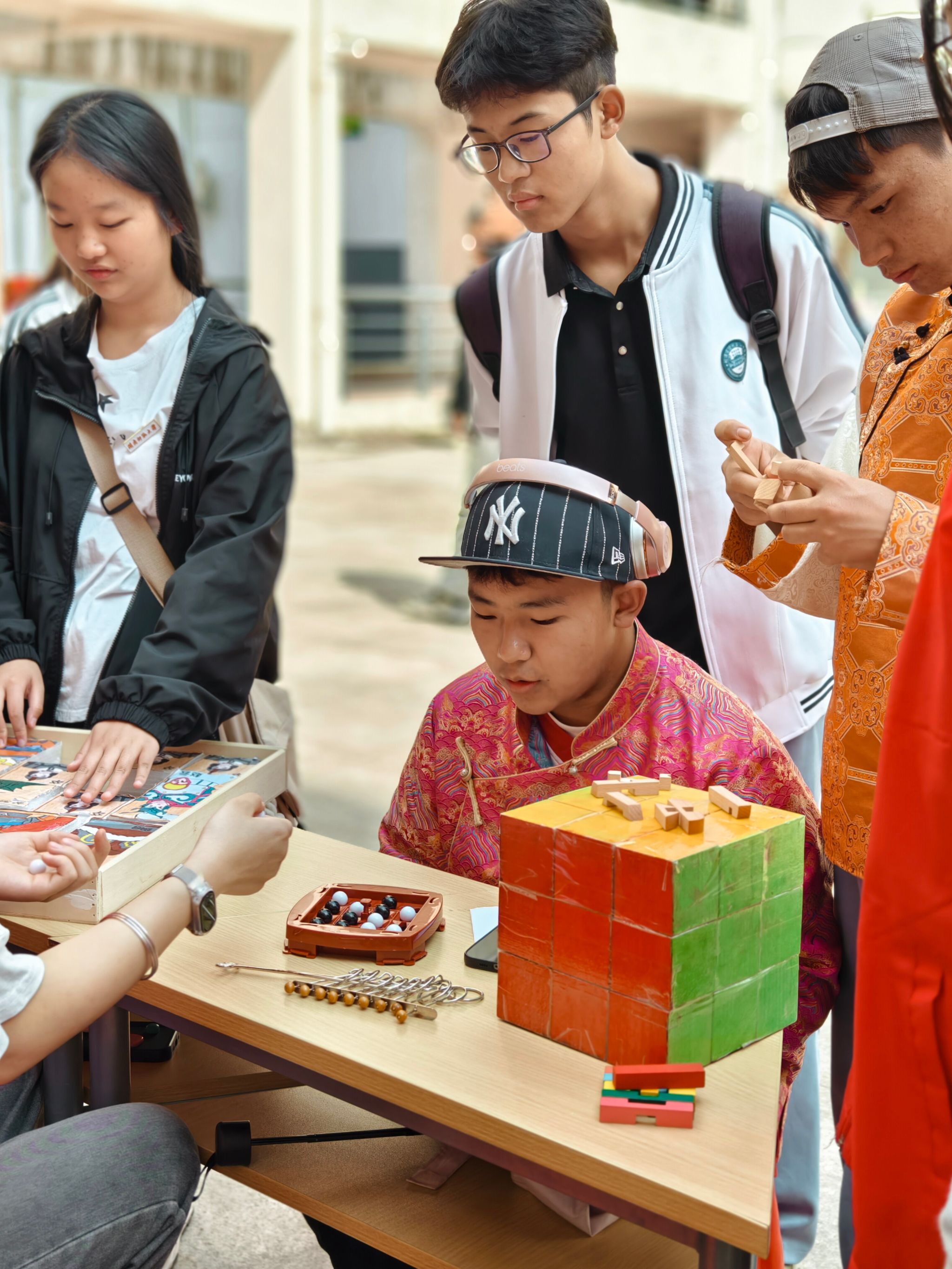 春日的闽南师大校园,数学文化长廊前人头攒动,文化互鉴的火花在数字密码中迸发。西藏班学子走进yl6776永利集团第四届数学文化节,在志愿者的带领下开启数学文化探秘之旅,沉浸式体验数学魔术、益智教具等特色活动。活动过程中,西藏班学子在空地围成圆圈,跳起欢快的锅庄舞。旋转的裙摆与飘动的哈达交相辉映,志愿者们自发加入舞蹈行列,围观师生纷纷举起手机记录这动人的民族团结画面。
