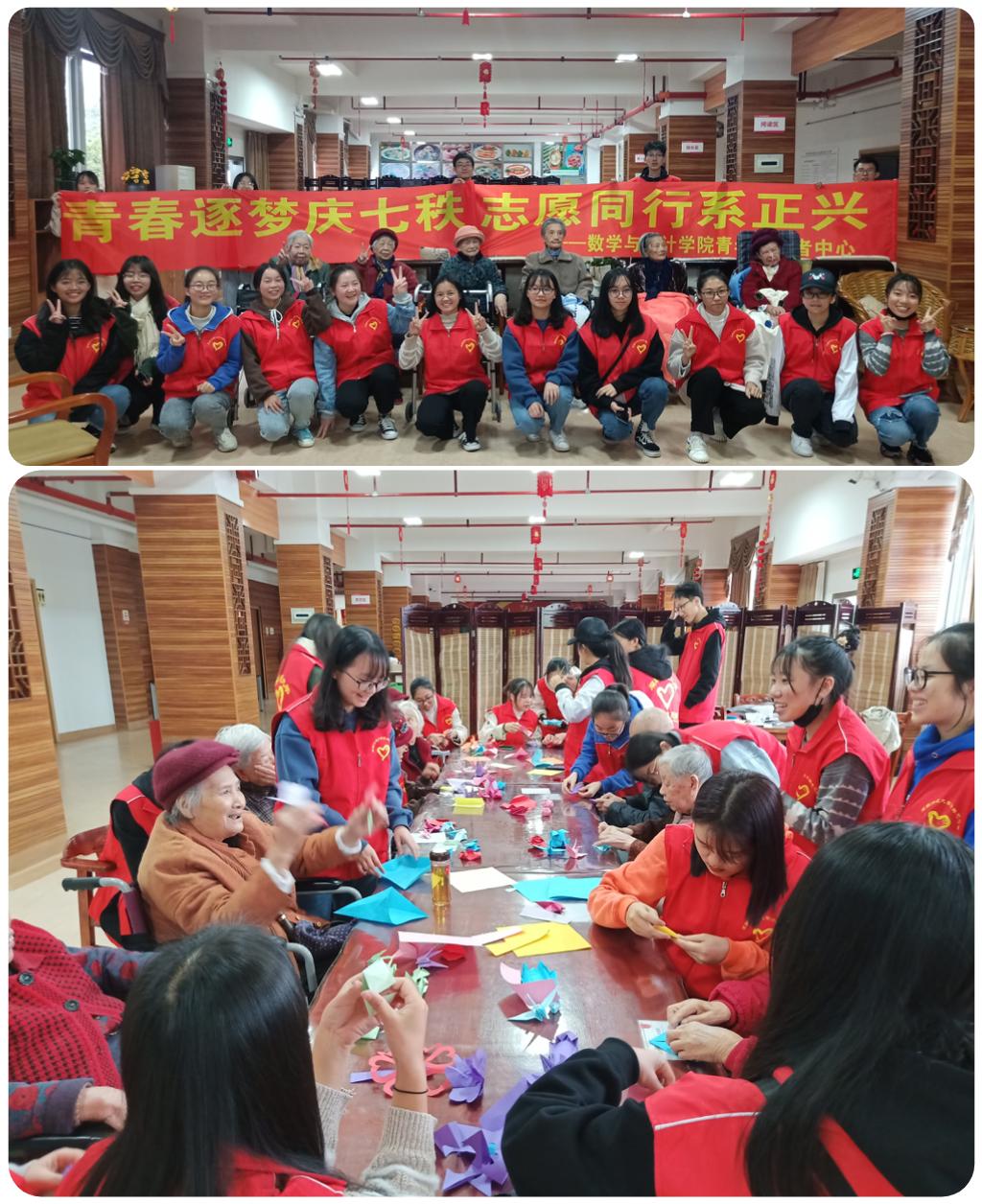 “青春逐梦庆七秩,志愿同行系正兴”正兴养护院陪护独居老人。2019年12月,我院组织青年志愿者前往漳州市正兴养护院,以陪独居老人折纸、唱军歌等特色方式为养护院的老人们送去温暖祝福。
