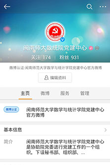 据悉,我院早在2013年4月作为学校四个试点院系之一建立党建官方微博平台,该平台经过1年多来的建设,目前已趋于完善,成为学院党建工作的重要阵地。至此,通过微博微信平台建设,形成了学院网上党建工作的重要载体,构建了线上线下一体化的党建工作平台,延伸了学院党建工作的触角,适应了信息化时代党建工作的要求。