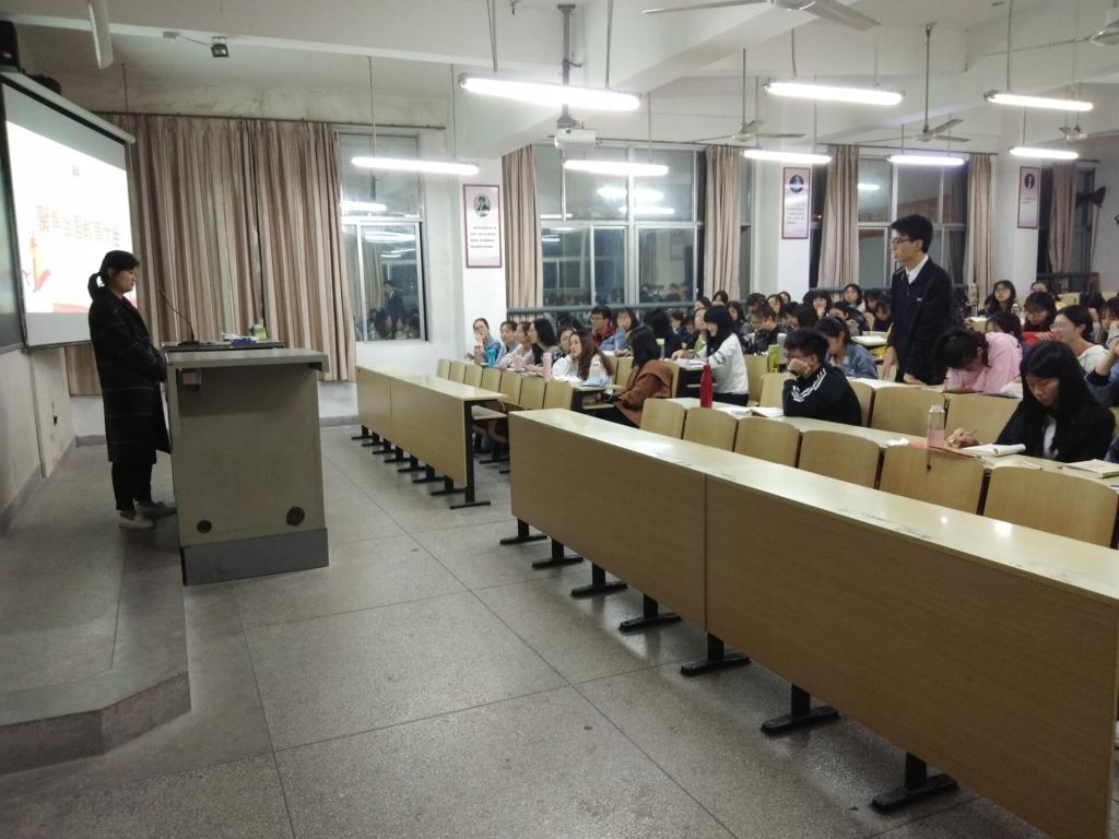 4月14日晚上,院学生第四党支部书记蒋晓莉在砺志131为我院入党积极分子开展了以《全国全省教育大会精神解读》为主题的专题党课。