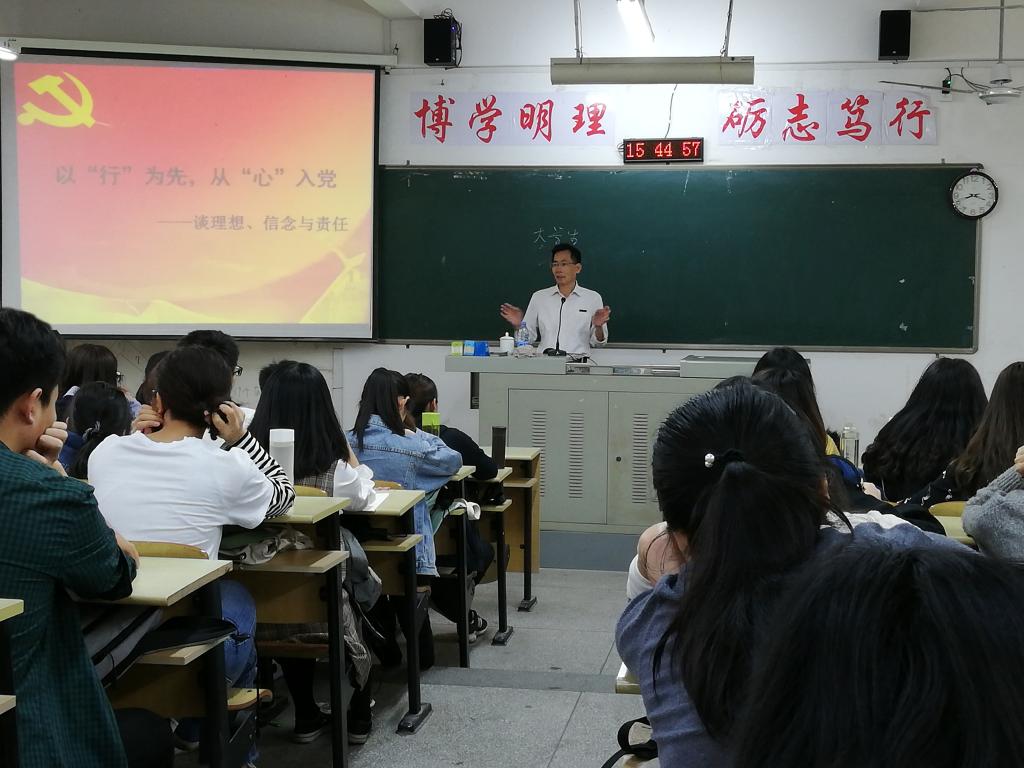 4月11日下午,我院院长林梦雷在砺志楼130为我院入党积极分子开展了以“以行为先,从‘心’入党----谈理想、信念与责任”为主题的专题党课。