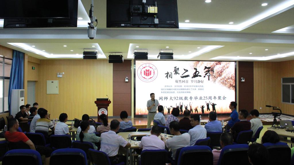 8月10日下午,闽师大92级数专毕业25周年师生联谊会在砺志楼120教室举行。学院党委书记陈晶莹、院长林梦雷、学校校友办副主任刘勤、校友办秘书陈建漳、原92数专科任教师黄晓农、林卫强、林斐、唐振松、杨晓灵以及92数专60多名校友参加了本次联谊会。联谊会由92数专校友邓建平主持。