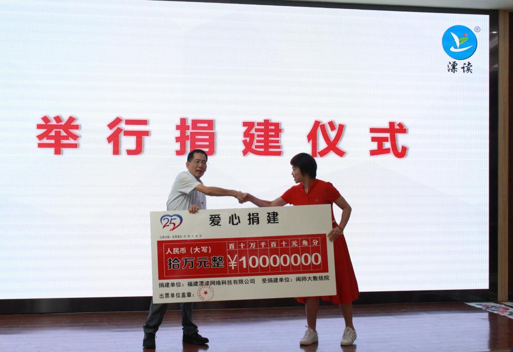 在捐赠仪式上,福建漂读网络科技有限公司董事长柯桂香代表92级数专向学院捐献拾万元,主要用以支持学院学科、教学、科研的基础建设。林梦雷代表学院对校友感恩母校、情系闽师、慷慨捐赠的善举表示衷心感谢。他指出,校友的捐赠寄托了对母校的深情厚谊、对学生的关爱以及对教育事业的情怀。福建漂读网络科技有限公司与yl6776永利集团签订战略合作协议,双方将加深校企合作,致力于高素质人才的培养,共建实践教学基地、实习实训基地和创新创业基地。