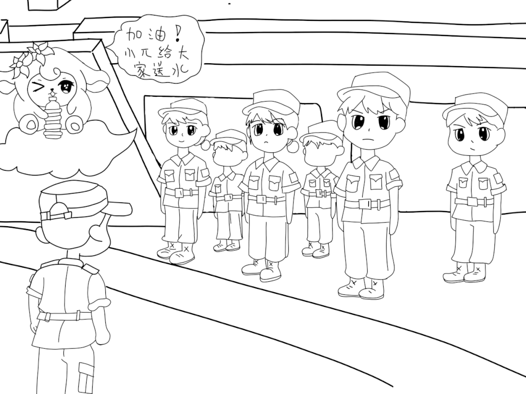 训练场上汗光闪烁,云端的送水身影带着暖意,为坚毅的军姿注入一抹温柔的动力。