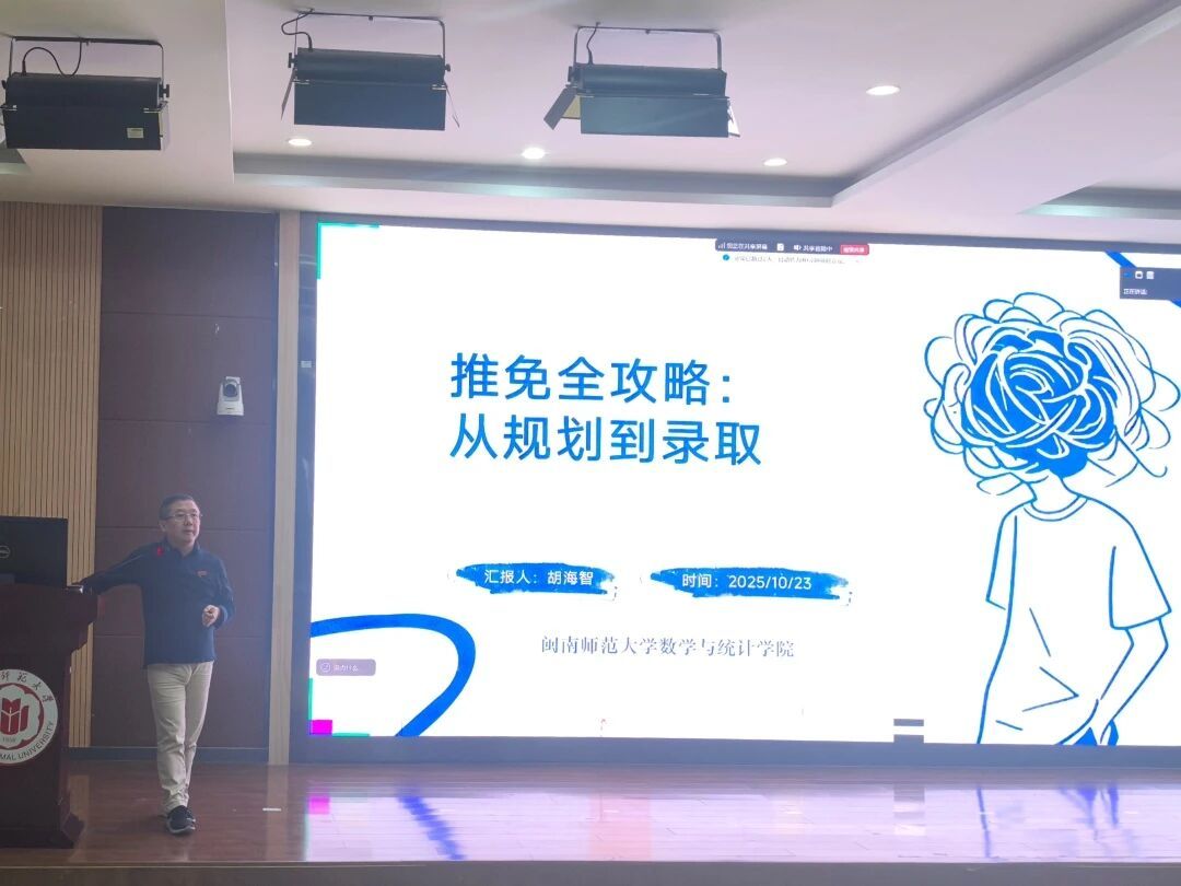 2025年10月23日下午,我院在砺志楼120教室成功举办推免全攻略专题讲座,学院党委副书记胡海智、辅导员黄艺佳及2027届、2028届有意向申请推免的学生代表参加本次活动。