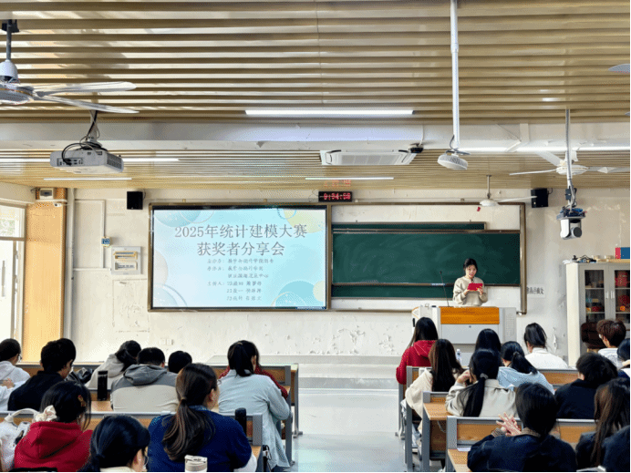 统计建模竞赛获奖者分享会上,2025年(第十一届)全国大学生统计建模竞赛省级一等奖获得者周梦婷与省级三等奖获得者张露文受邀主讲。周梦婷聚焦赛前筹备核心,从参赛队伍互补搭配、选题方向的现实价值与数据可得性研判,到统计模型的适配选择,为同学们梳理了备赛前期的关键逻辑。张露文则将重点放在赛中输出环节,深入讲解数据处理的核心技巧,同时结合自身经验分享统计报告的逻辑架构设计与规范表述要点,助力同学们打造逻辑严谨、内容扎实的参赛论文。