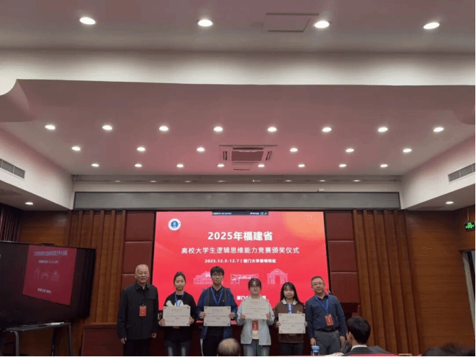 日前,2025年福建省高校大学生逻辑思维能力竞赛决赛圆满落幕。经过激烈角逐,我院学子凭借扎实的专业功底和出色的临场发挥能力,从全省众多高校中脱颖而出,最终荣获二等奖2项、三等奖6项的优异成绩。12月6日学院教师及获奖学生代表受邀到厦门大学参加颁奖仪式暨福建省高校逻辑学教育研讨会。