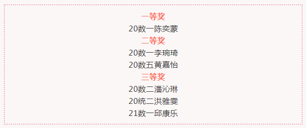 活动期间,我们收到了很多优秀作品,经过对同学们提交的作品精心挑选后,最终确定如下获奖名单,让我们一起恭喜他们吧!