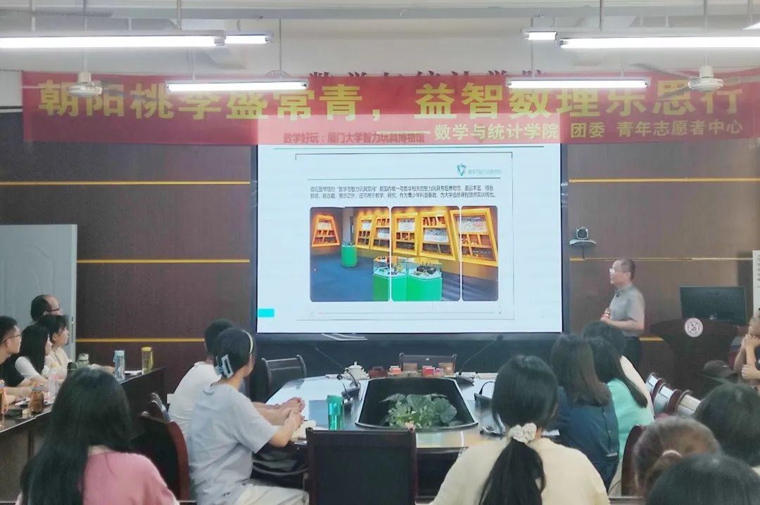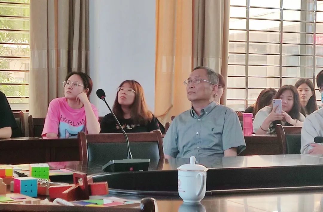 5月6日,厦门大学林亚南教授莅临我院,在砺志楼114会议室开展以“朝阳桃李盛常青,益智数理乐思行”为主题的数学益智教具研习指导活动,学院常务副院长黄韩亮教授主持。活动中,林亚南教授与我院学生共同探讨数学益智教具中所蕴含的数学知识以及数学文化,共同体验数学文化特有的趣味和魅力。