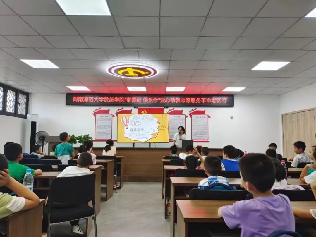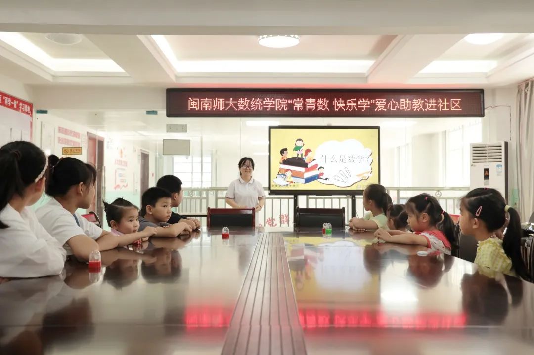 为进一步贯彻落实党的二十大精神,引导青年学生将课堂理论知识和乡村振兴实践紧密相结合,yl6776永利集团“倾‘汀’心声,助梦童行“暑期社会实践团,以我院“常青数,快乐学”爱心助教活动为基础,到革命老区——长汀积极开展义教进社区活动。“常青数,快乐学”爱心助教活动作为我院的品牌活动之一,为有需求的学生展开一对一教学辅导,其活动范围已经从校内辐射至周边校园,再到走进社区,现已来到革命老区为更多的小朋友带来有趣的知识。