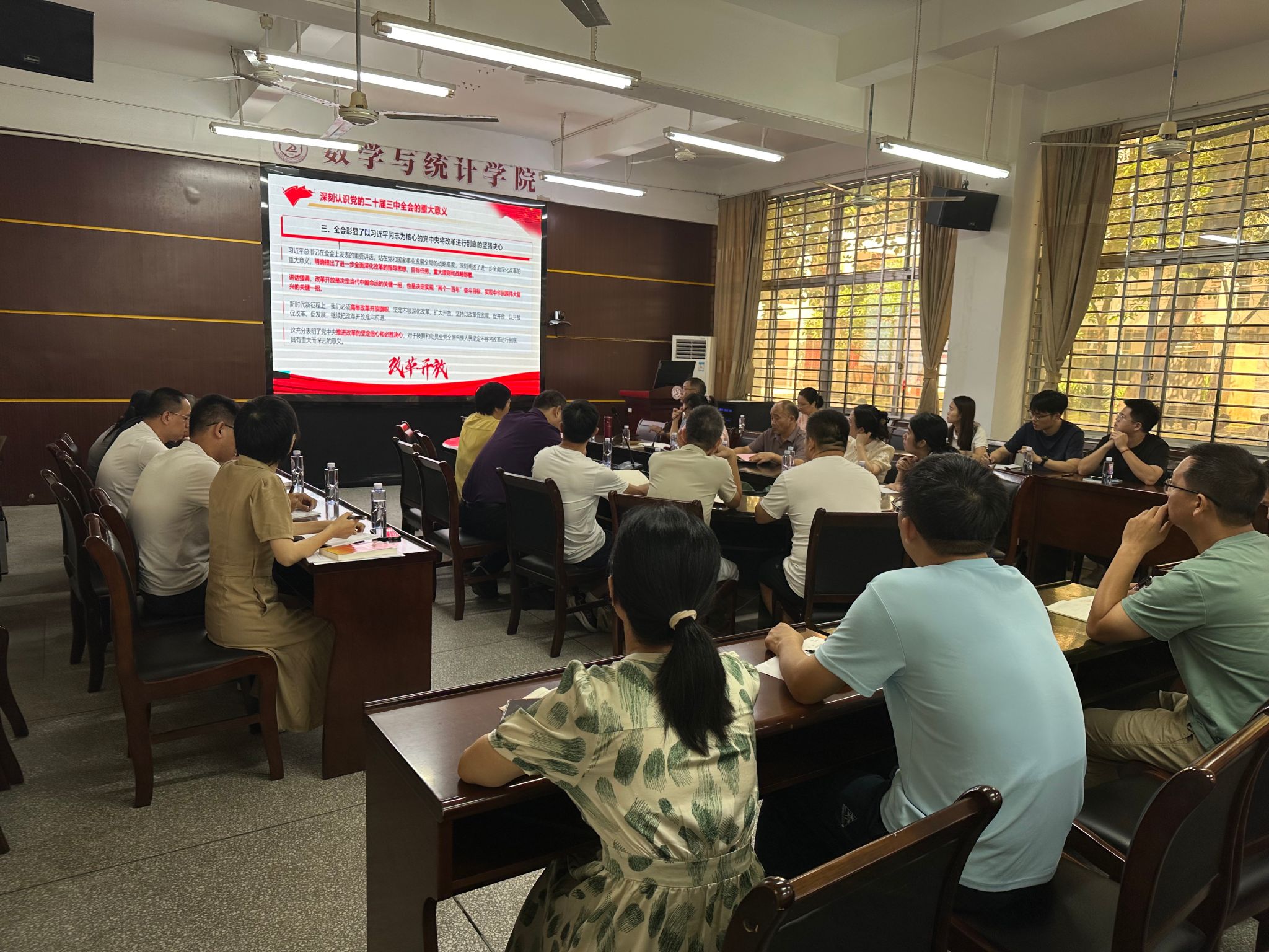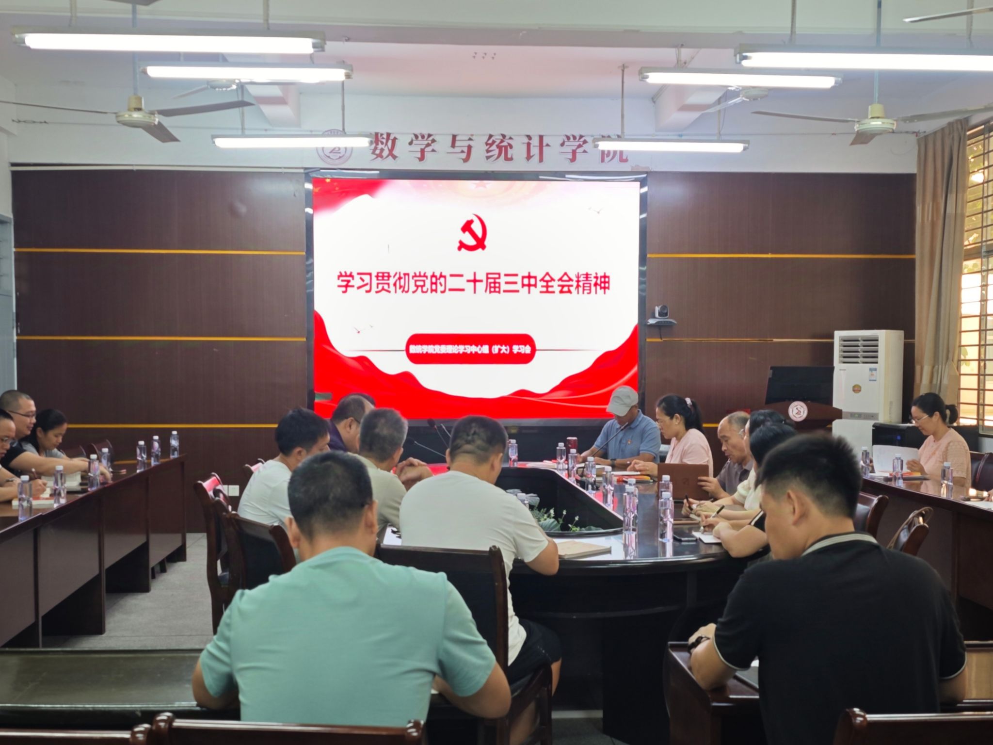 9月9日上午,数统学院召开党委理论学习中心组(扩大)学习会,深入学习党的二十届三中全会精神,部署安排学习贯彻有关工作。学院党委委员、院长助理、系主任、科级干部、党支部书记参加会议,会议由院党委书记陈晶莹主持。